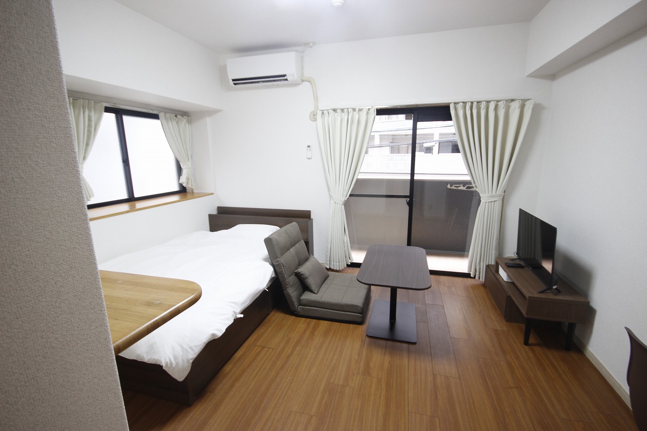 福岡市中央区今泉にある「ルームイン天神今泉Ⅰ-D」は、天神や薬院駅からほど近く、交通アクセスが良好なマンスリーマンションです。周辺には福岡PARCOや警固神社、カフェや飲食店も多く、生活やショッピングを楽しみながら快適に暮らせる環境が整っています。都市の便利さを感じつつ、街歩きや食事も気軽に楽しめる立地です。 お部屋は落ち着いたダークブラウンの床を基調に、家具も同色で統一。シックで穏やかな雰囲気の空間に仕上げています。昇降式デスクを採用しており、座椅子と組み合わせればローテーブルとしても活用可能。仕事や勉強、食事、くつろぎの時間など、その日の気分やライフスタイルに合わせて自由に使えます。 また、家具・家電・生活備品が一通り揃っているため、荷物を最小限にして手ぶらで入居しても快適に過ごせます。都市の便利さと落ち着いた居心地を両立させたお部屋で、短期・中期の滞在にもぴったりです。