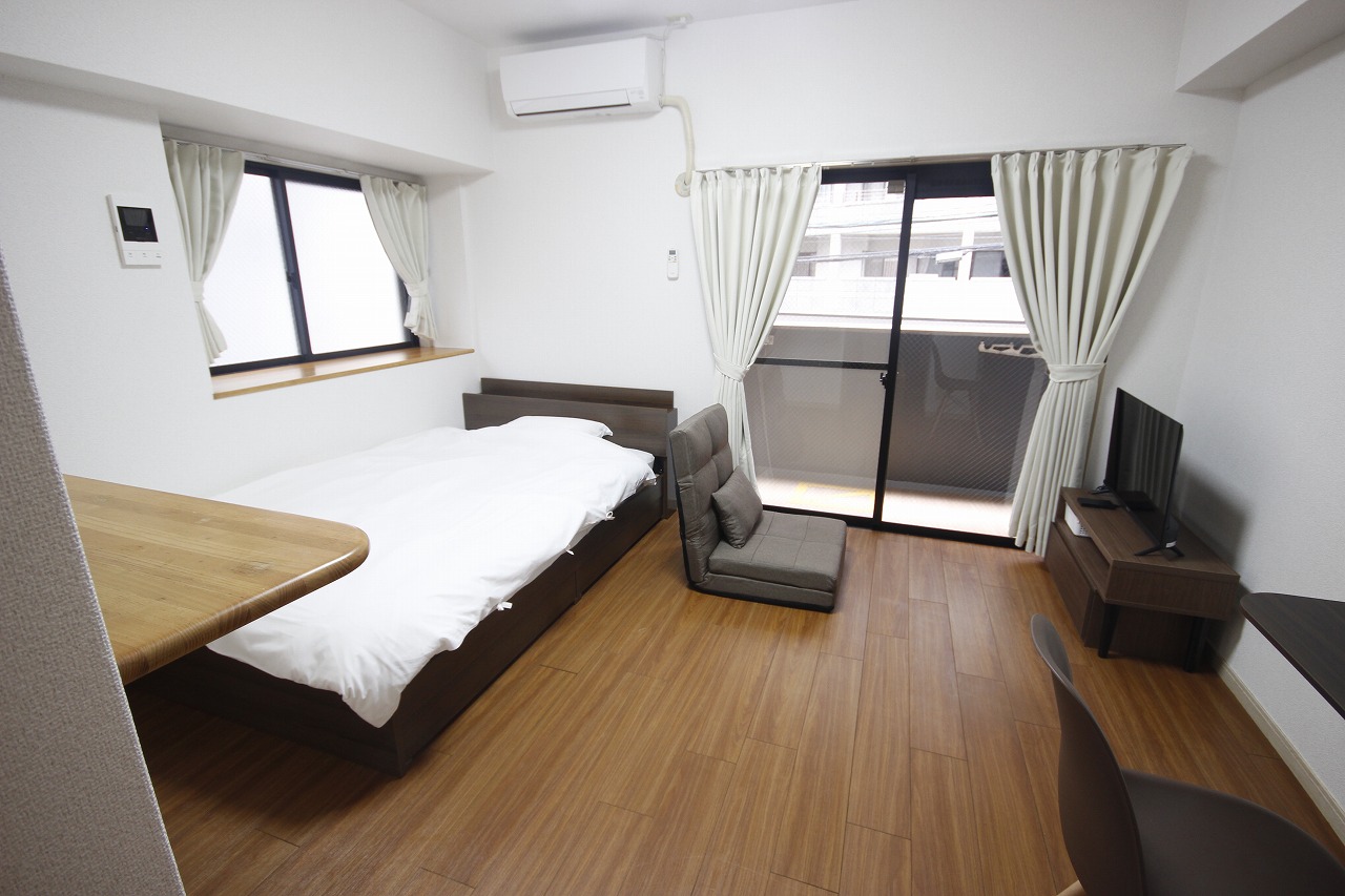 福岡市中央区今泉にある「ルームイン天神今泉Ⅰ-D」は、天神や薬院駅からほど近く、交通アクセスが良好なマンスリーマンションです。周辺には福岡PARCOや警固神社、カフェや飲食店も多く、生活やショッピングを楽しみながら快適に暮らせる環境が整っています。都市の便利さを感じつつ、街歩きや食事も気軽に楽しめる立地です。 お部屋は落ち着いたダークブラウンの床を基調に、家具も同色で統一。シックで穏やかな雰囲気の空間に仕上げています。昇降式デスクを採用しており、座椅子と組み合わせればローテーブルとしても活用可能。仕事や勉強、食事、くつろぎの時間など、その日の気分やライフスタイルに合わせて自由に使えます。 また、家具・家電・生活備品が一通り揃っているため、荷物を最小限にして手ぶらで入居しても快適に過ごせます。都市の便利さと落ち着いた居心地を両立させたお部屋で、短期・中期の滞在にもぴったりです。
